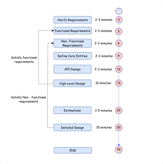 When answering system design questions, remember that the interviewer knows nothing about your experience—whether you've solved hundreds of design problems or none. You have just 45 minutes to 1 hour for them to evaluate you.