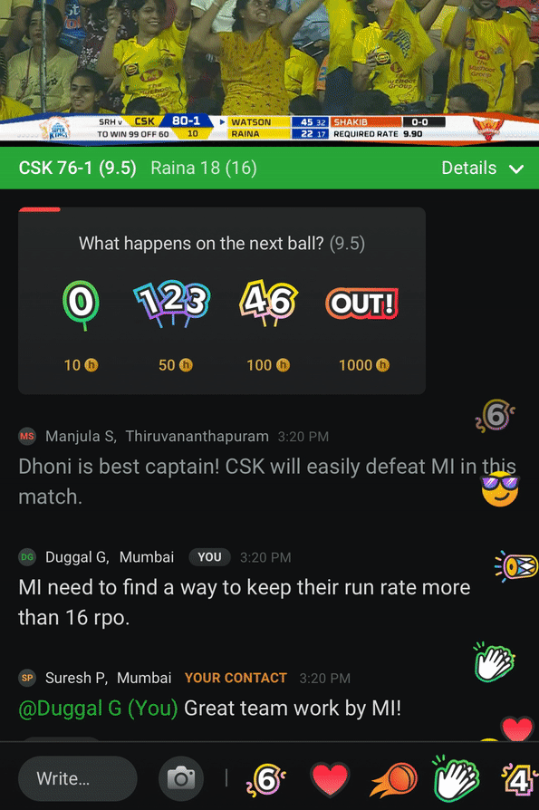 Interviewer:- No, there’s no hard limit on emoji frequency, but we expect bursts during key moments in the match (e.g., during a boundary or wicket).